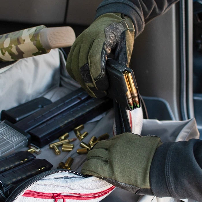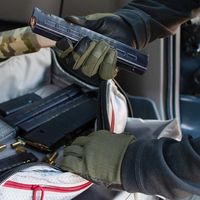 - Conductive leather on the trigger finger, middle finger and thumb is compatible with touchscreen devices