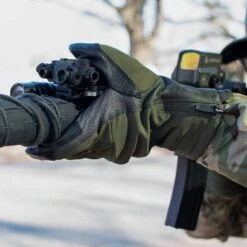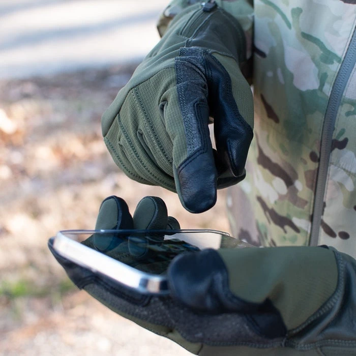 - Conductive leather on trigger finger, middle finger and thumb is compatible with touchscreen devices