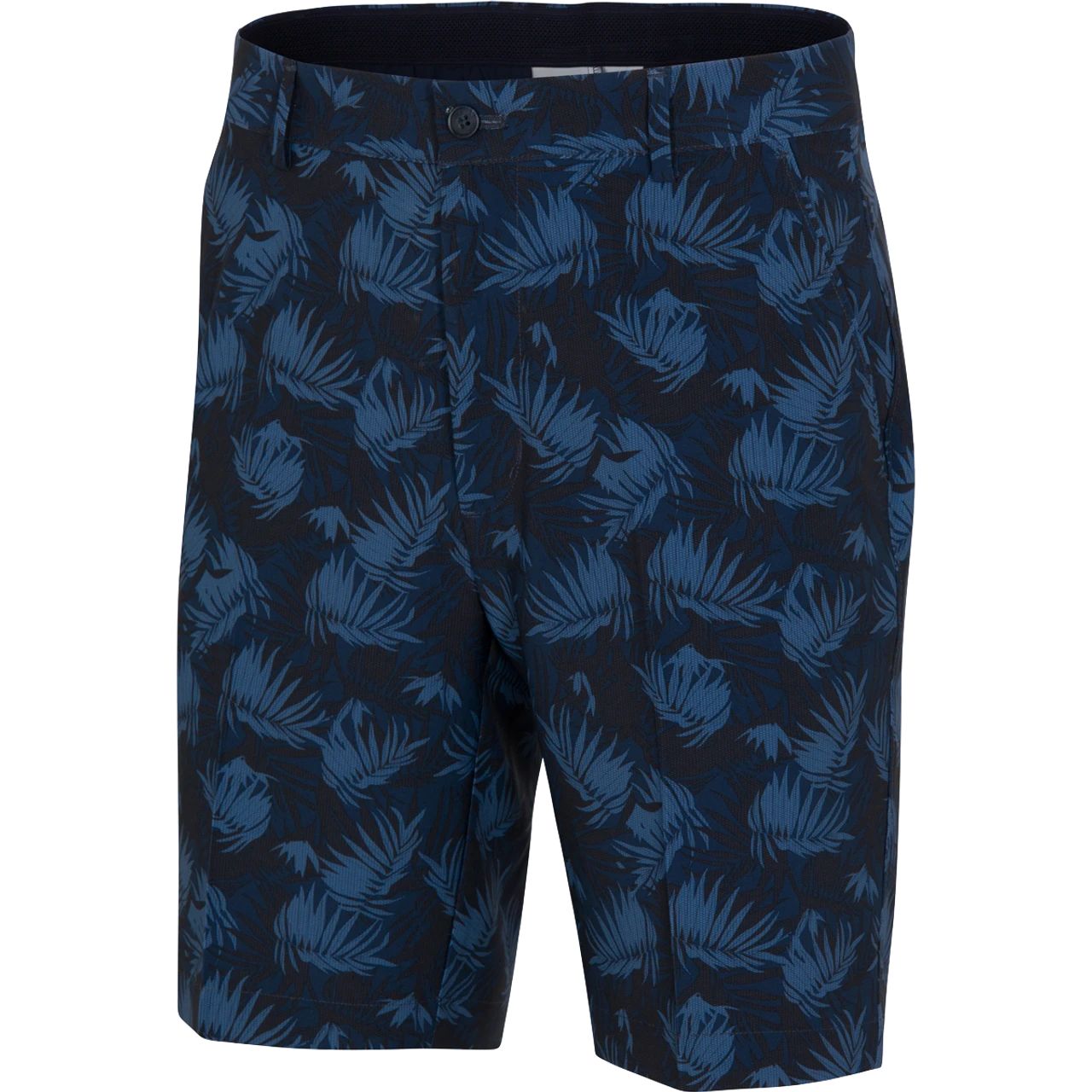 This lightweight performance short has a palm leaf print design, 10 inch inseam and a stretch waistband for added comfort.