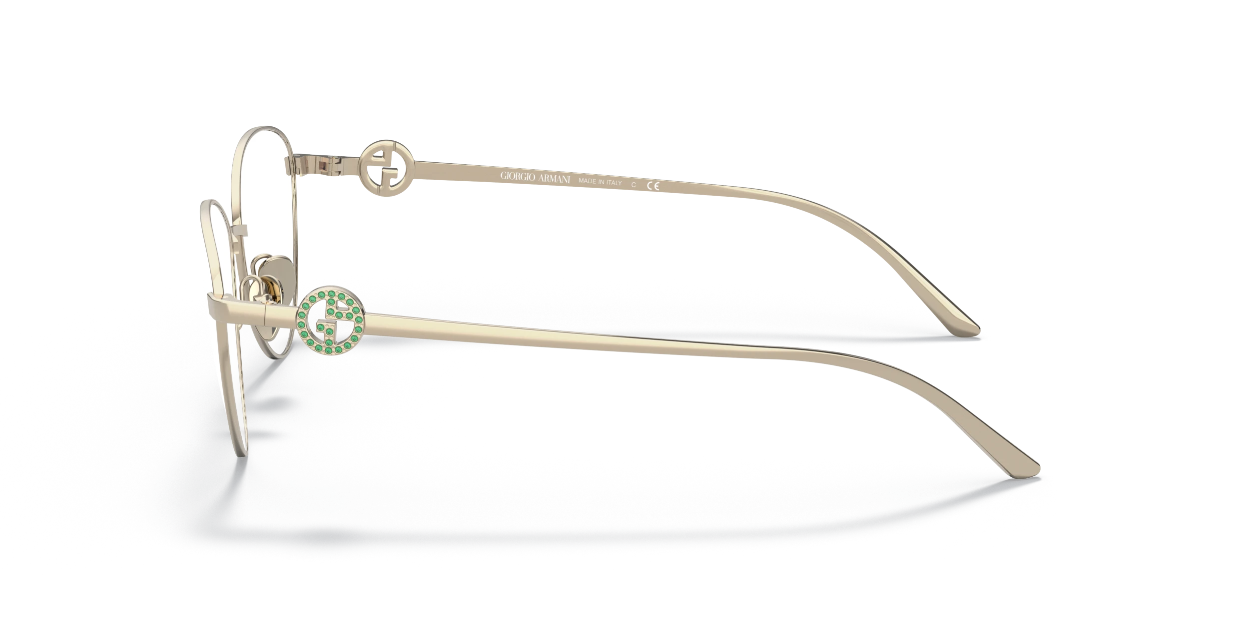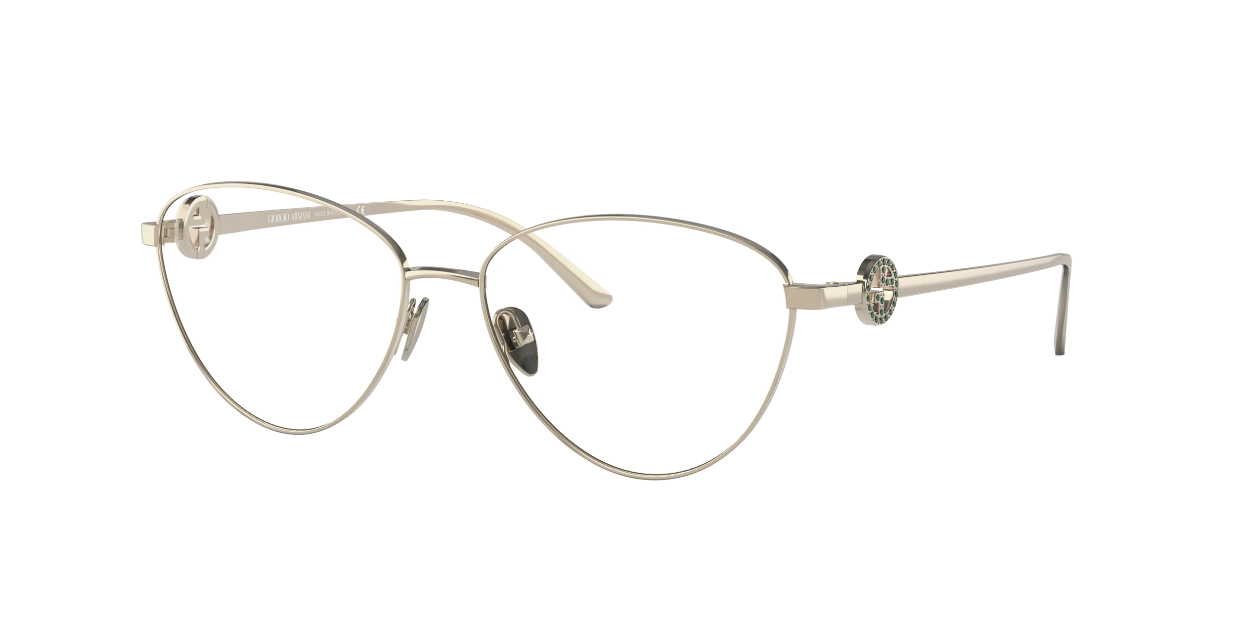 Elevate your fashion game with Giorgio Armani AR5113B eyeglasses. The polished metal frame in a butterfly shape is a timeless design that never goes out of style. The pale gold color adds a touch of elegance, while the strass on the temples ensure you shine bright like a diamond. These glasses are not only stylish but also practical. Embrace sophistication and luxury with these stunning frames. Available with prescription lenses.