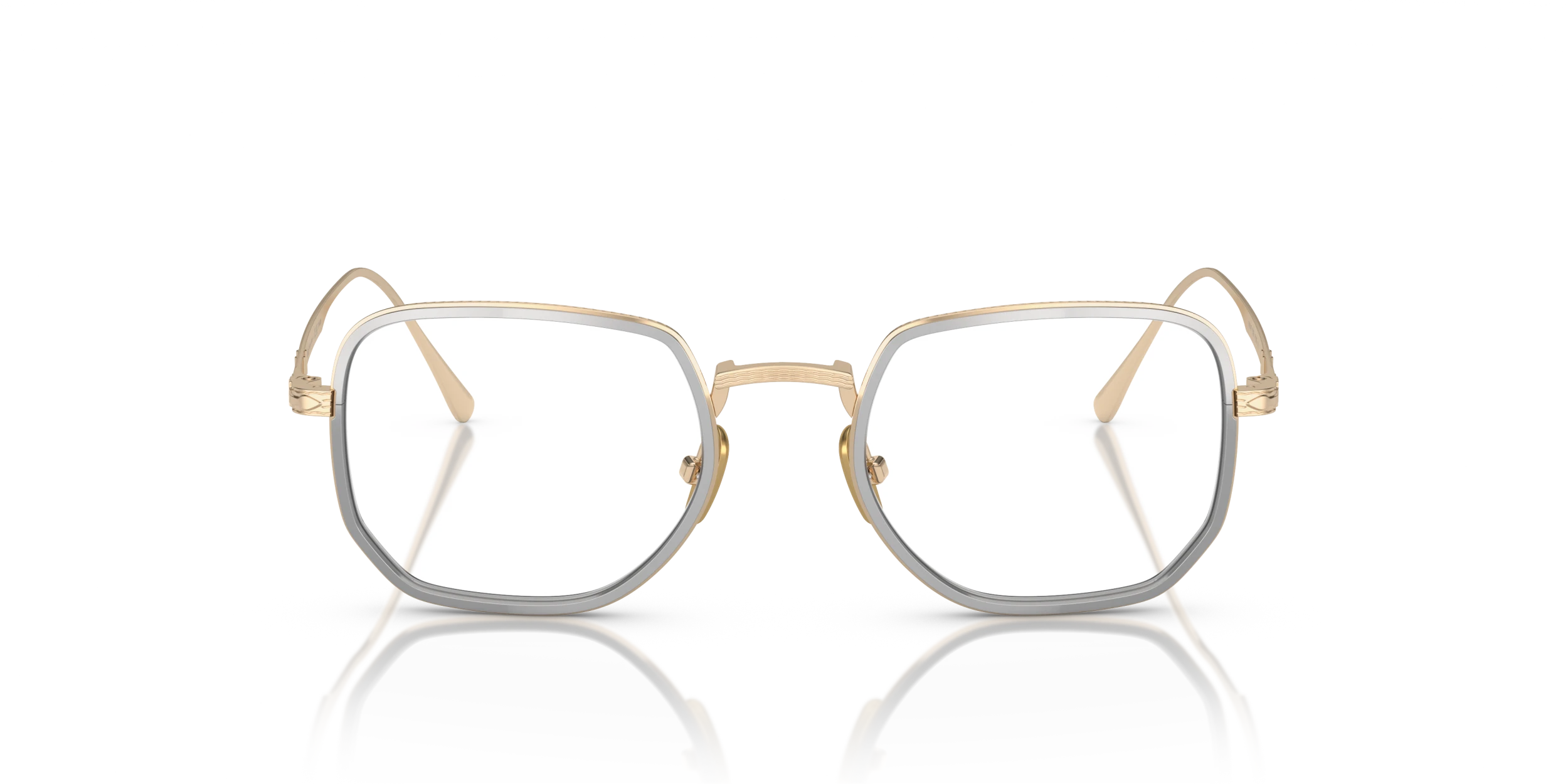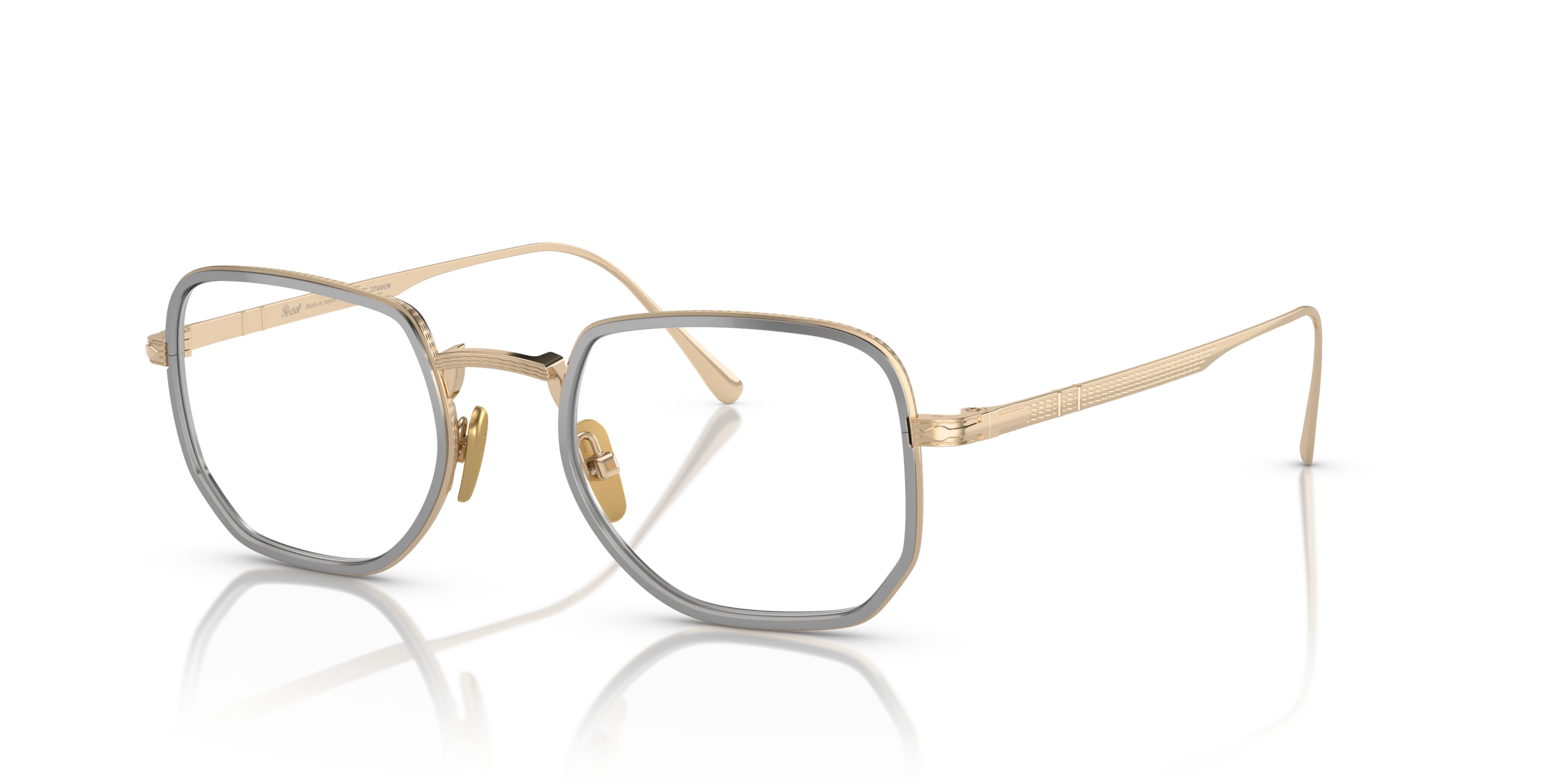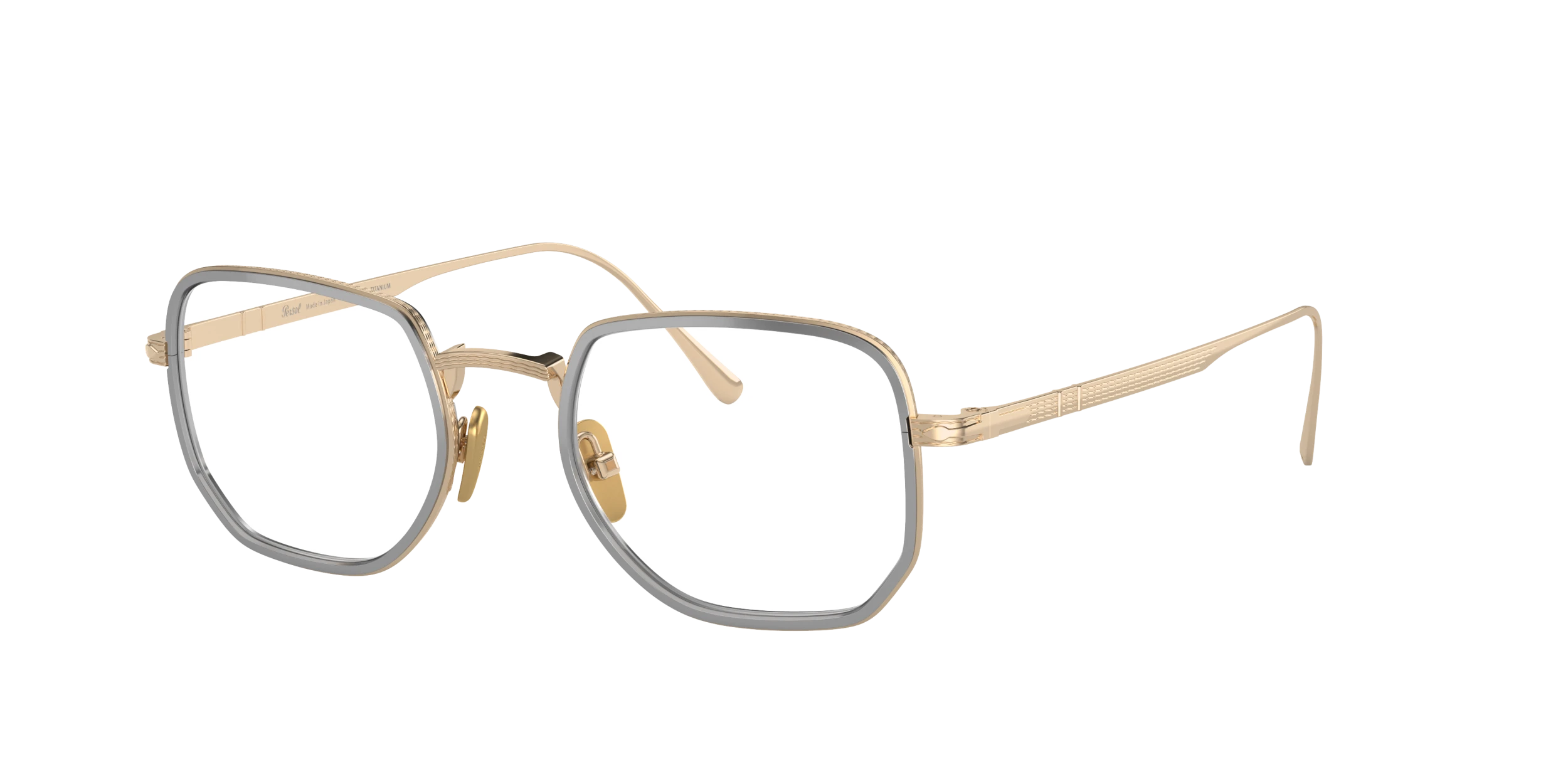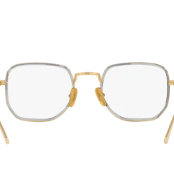 Elevate your fashion and vision with Persol PO5006VT eyeglasses. The titanium frame, known for its strength and light weight, is meticulously crafted into a rectangle shape that adds a modern touch to your look. The polished gold/silver finish of the frame creates a luxurious aesthetic appeal. These glasses are not only stylish but also practical. Embrace the synergy of fashion and vision with these elegant shades.