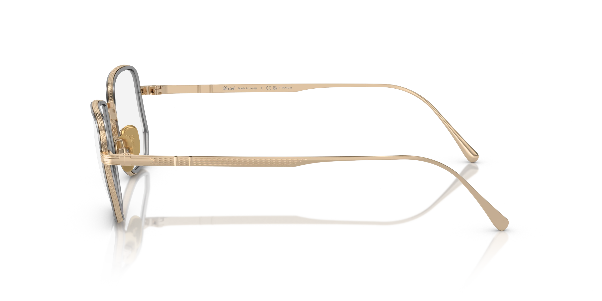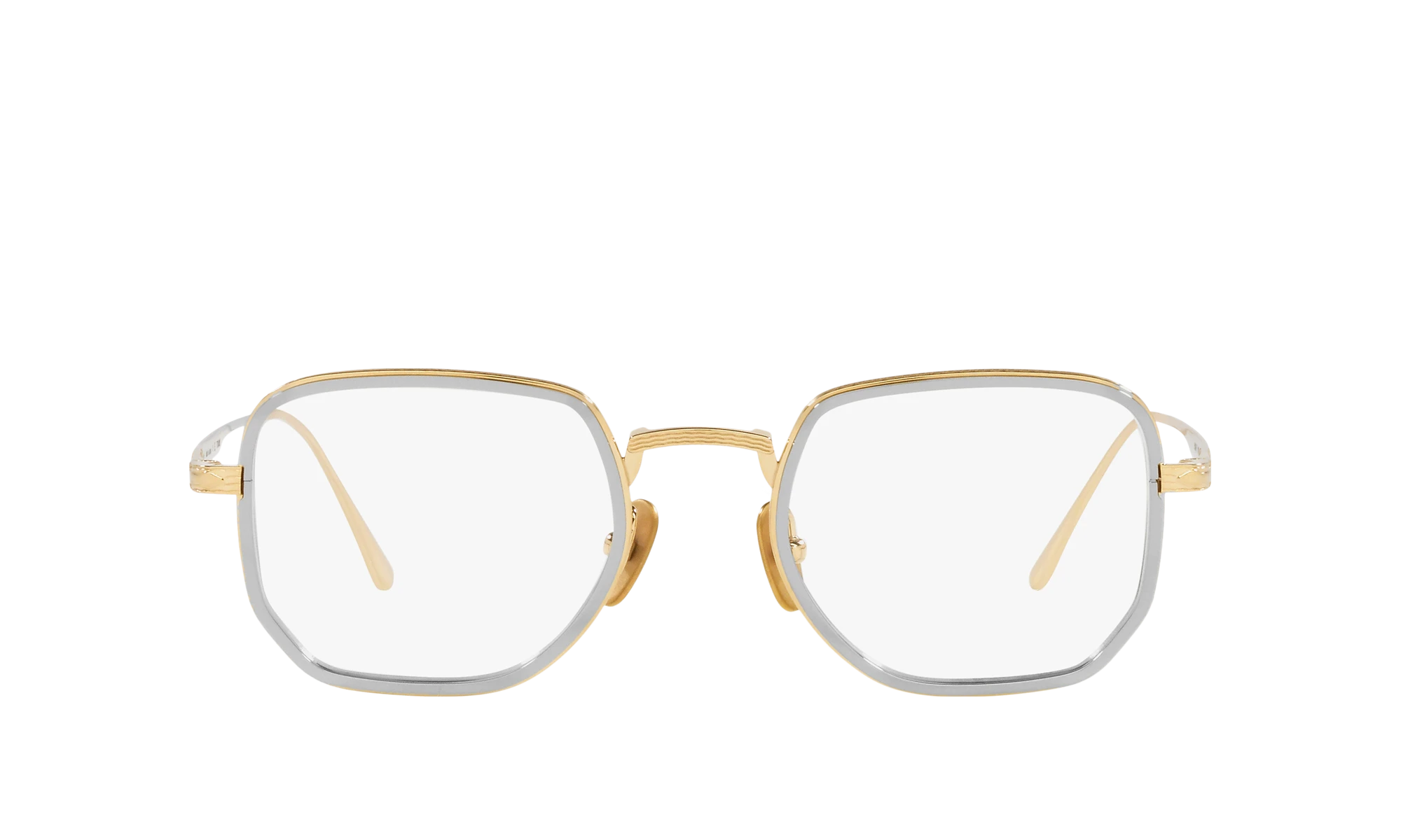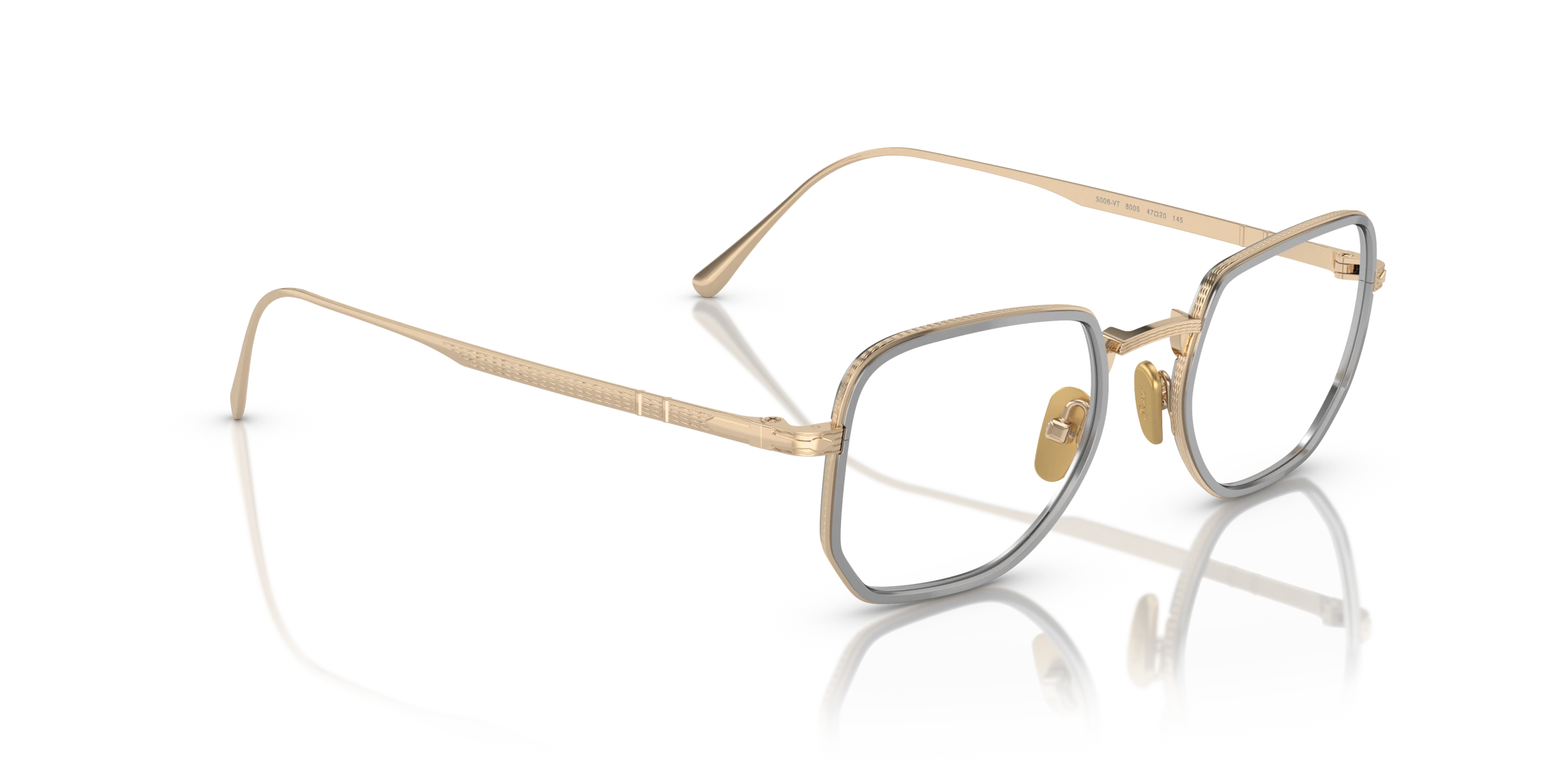 Elevate your fashion and vision with Persol PO5006VT eyeglasses. The titanium frame, known for its strength and light weight, is meticulously crafted into a rectangle shape that adds a modern touch to your look. The polished gold/silver finish of the frame creates a luxurious aesthetic appeal. These glasses are not only stylish but also practical. Embrace the synergy of fashion and vision with these elegant shades.