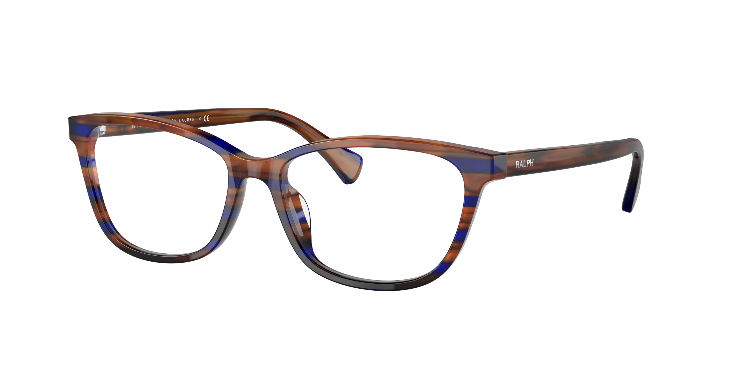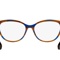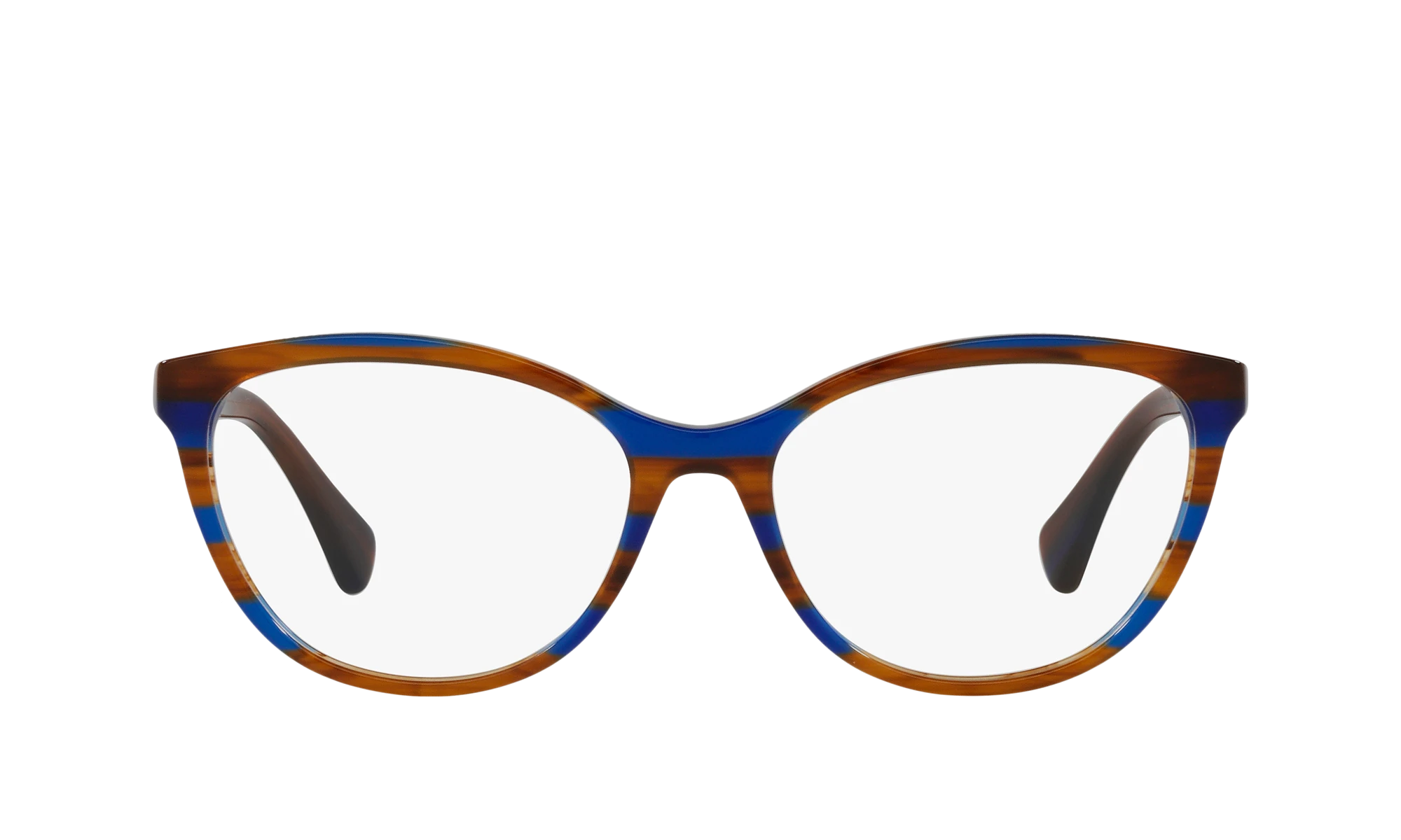 Experience the impeccable synergy of style and comfort with Ralph RA7133U eyeglasses. The pillow shape, crafted from polished acetate, gives these frames a unique and modern look. The striped brown blue color adds a touch of sophistication to your everyday attire. These glasses are not just stylish but also practical. Available with prescription lenses.