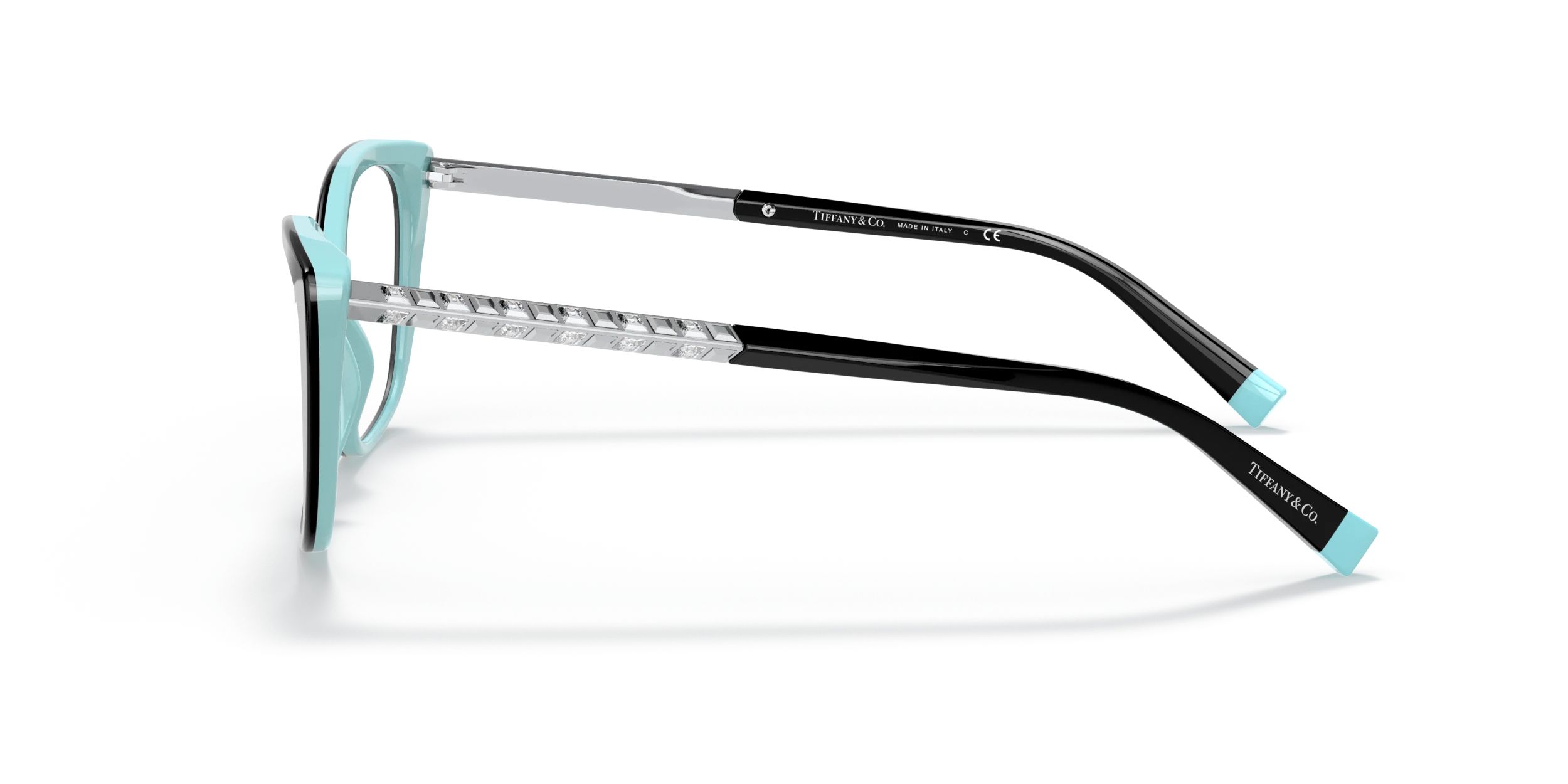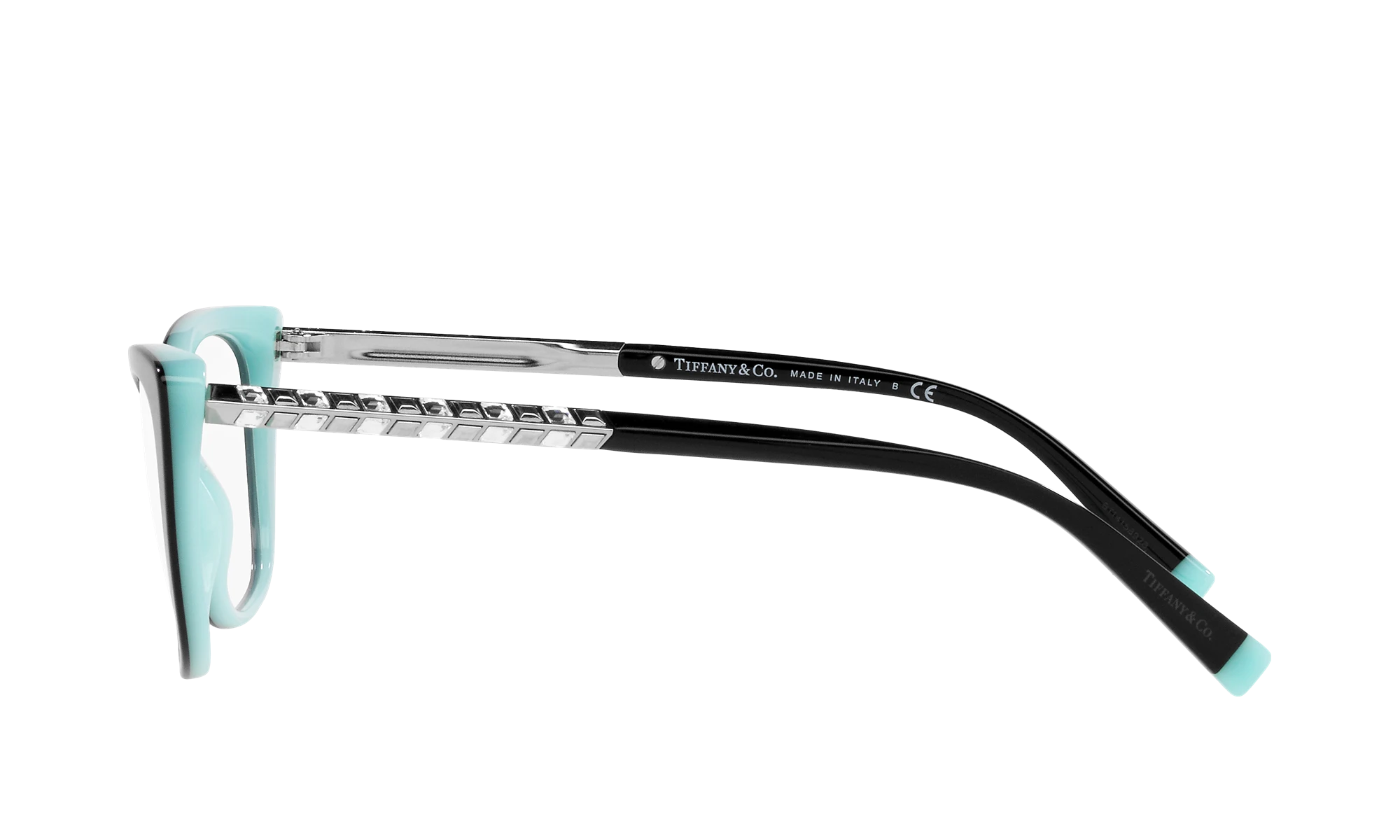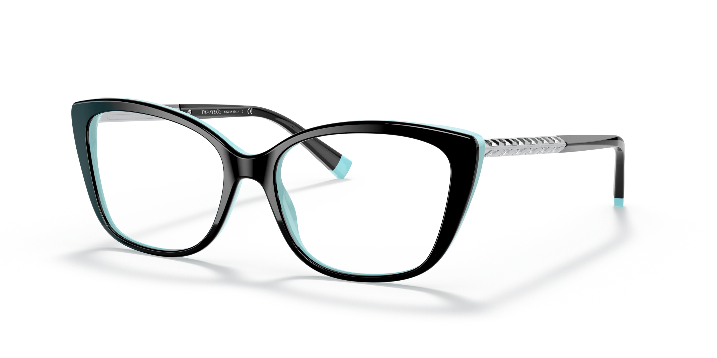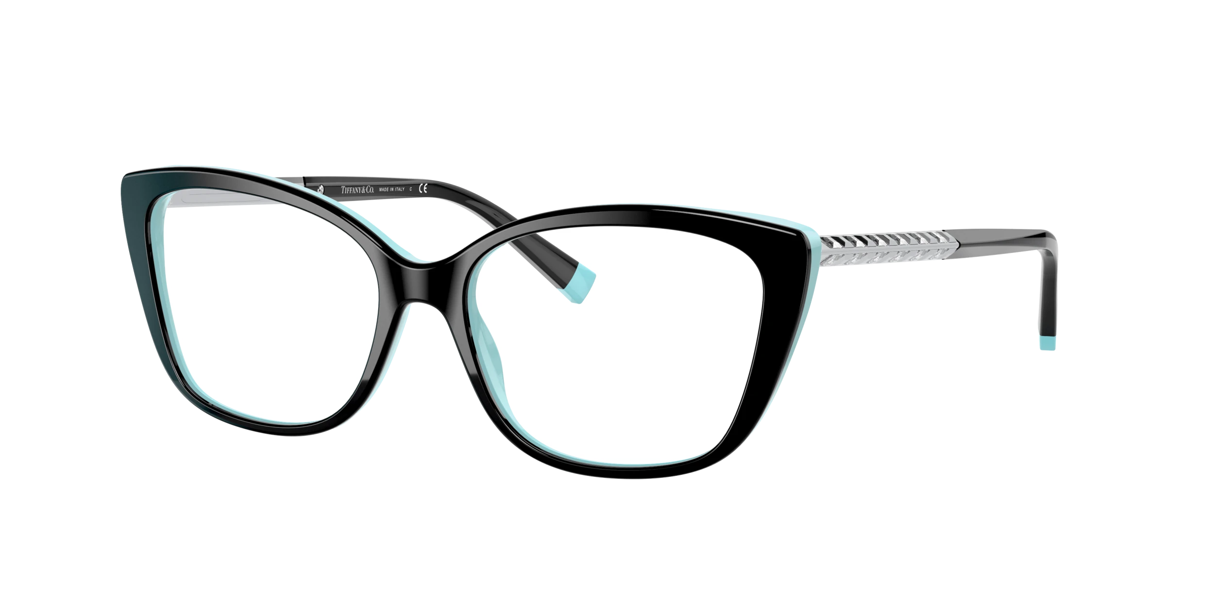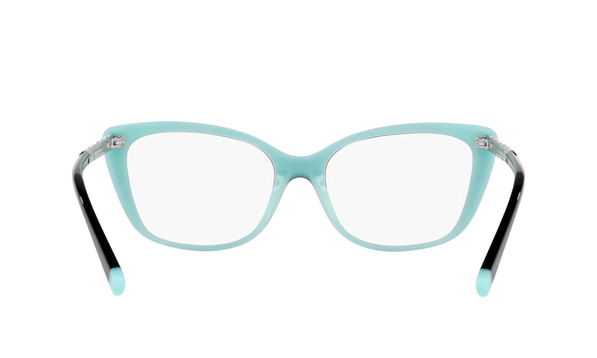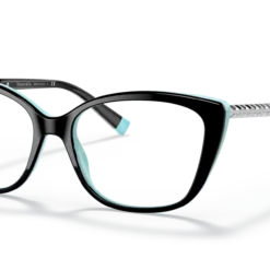 Elevate your fashion with Tiffany & Co. TF2208B eyeglasses. Crafted from high-quality acetate, these glasses feature a polished black on tiffany blue color that adds a touch of elegance to any look. The cat eye shape is a timeless design that complements any face shape, while the strass on strass on metal component adds an extra touch of glamour. These frames are not only stylish but also practical for everyday wear. Available with prescription lenses.