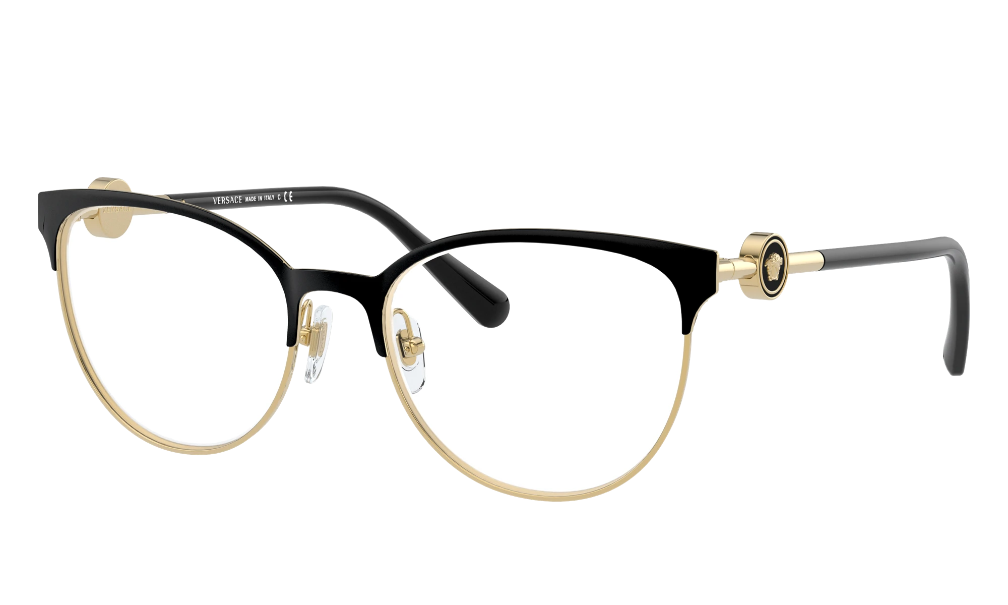 Discover the impeccable synergy of style and optical functionality in Versace VE1271 eyeglasses. The polished black/gold metal frame, with its distinctive cat eye shape, exudes a timeless elegance that is hard to resist. These glasses are not just a fashion statement, but also a practical accessory for everyday wear.