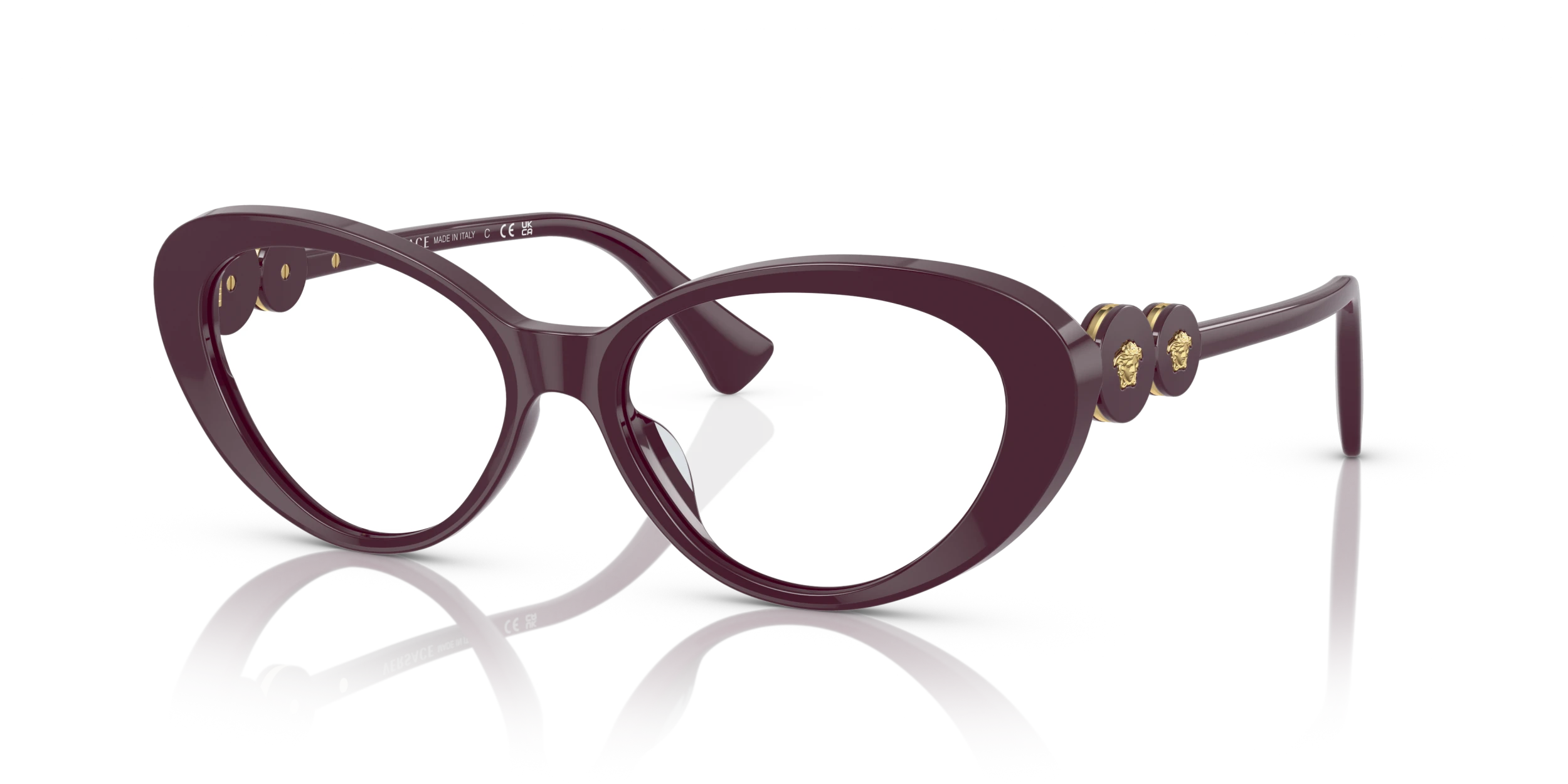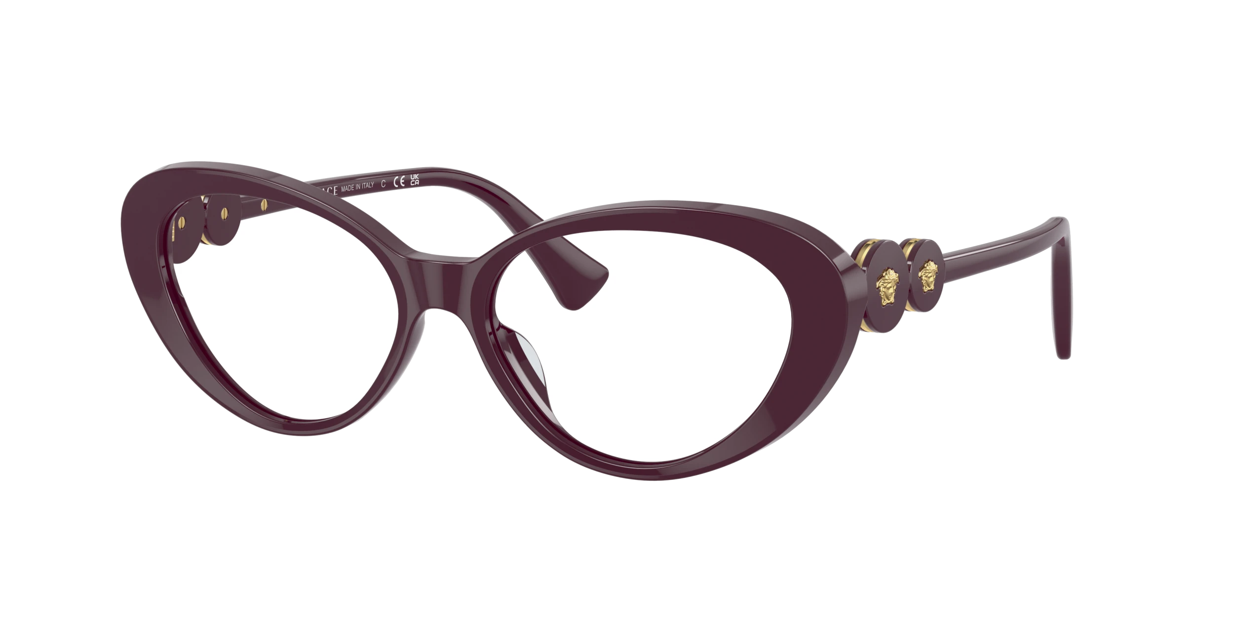 Made in Italy, Versace Eyewear provides the finishing touch to any look. Characterized by high-end materials and a recognizable design aesthetic, Versace eyeglasses and Versace sunglasses pair contemporary shapes with iconic brand codes.