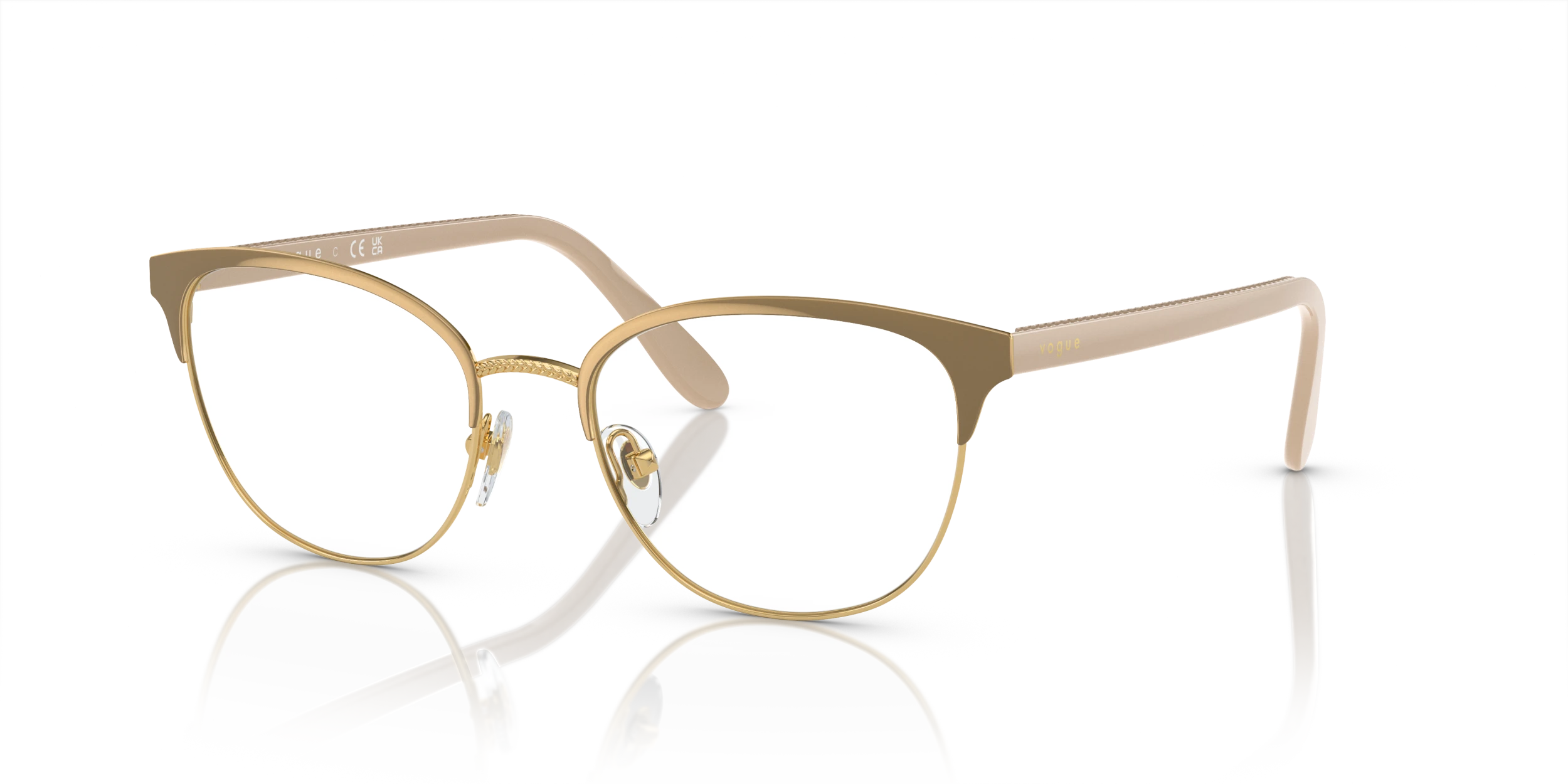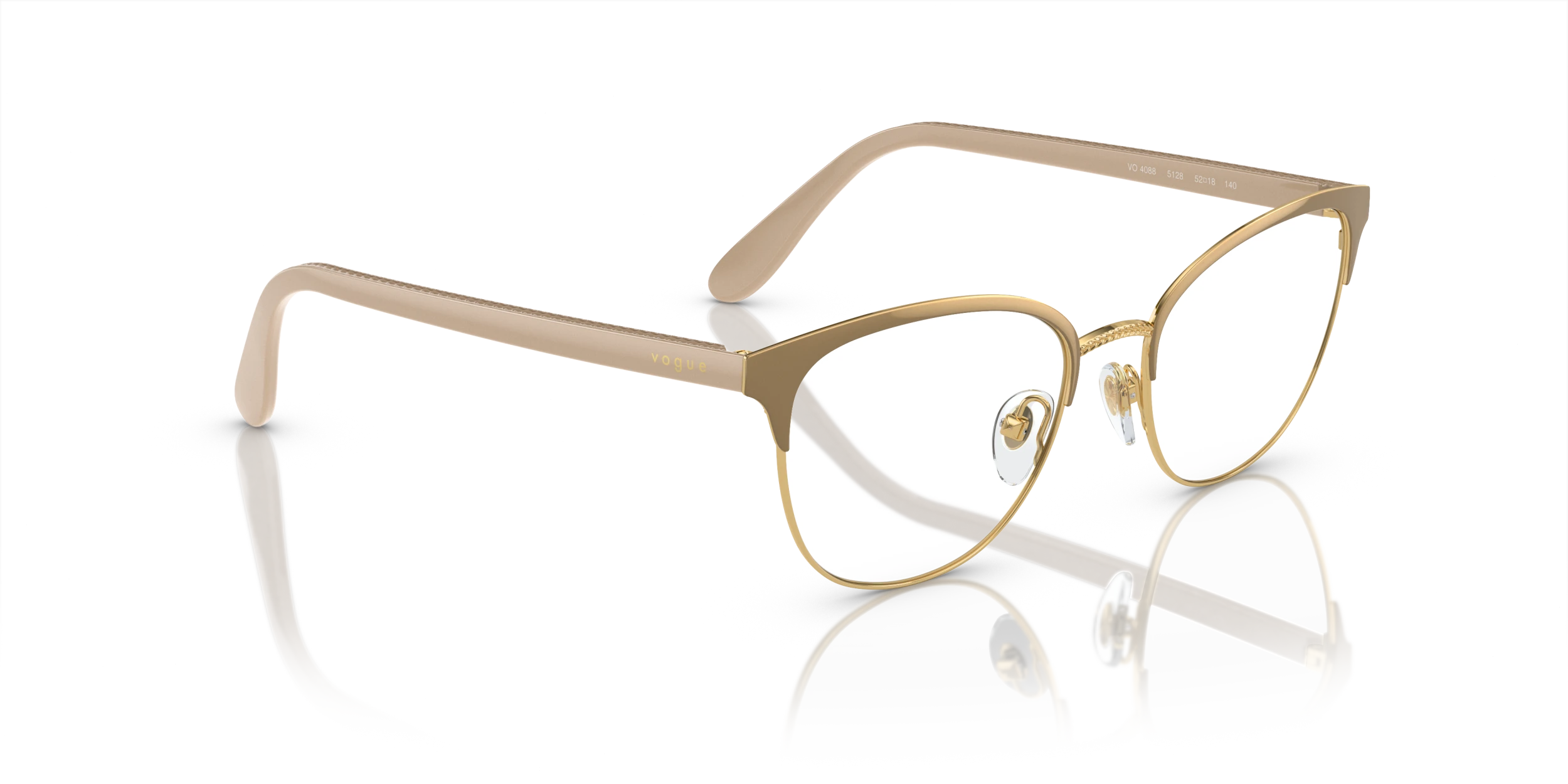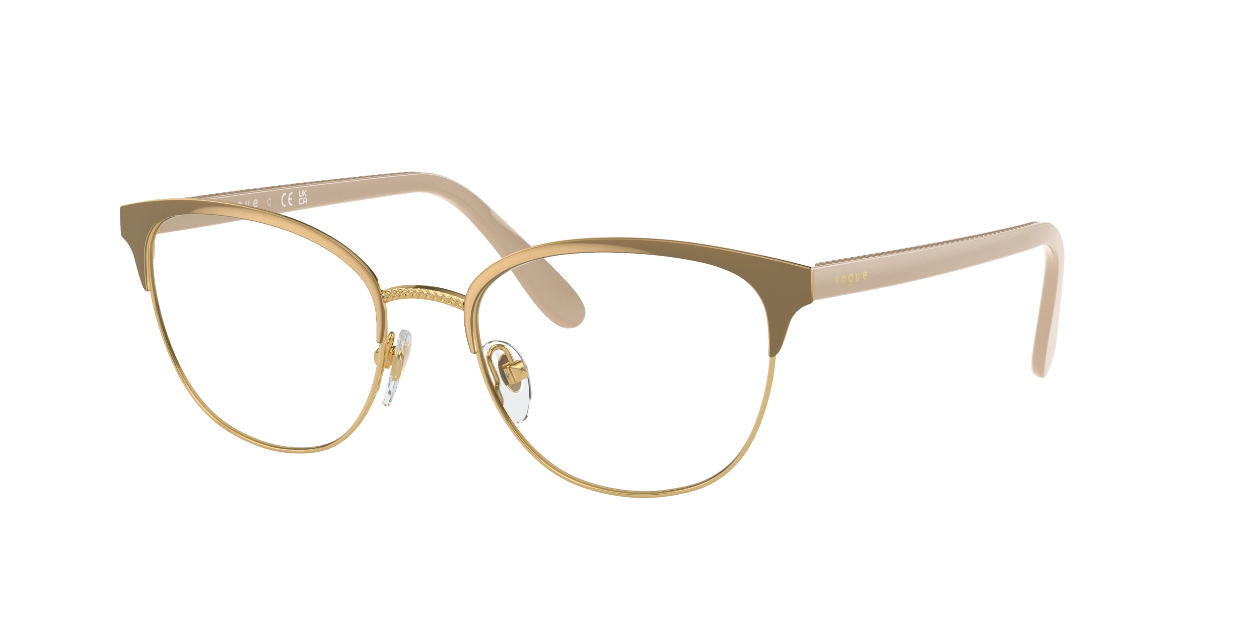 Elevate your style quotient with a pair of Vogue Eyewear VO4088 eyeglasses. These oval-shaped frames are crafted from durable metal, ensuring longevity and comfort. The polished top beige/gold color finish adds a touch of elegance, while the black color provides contrast. These glasses can be tailored to your preferences.