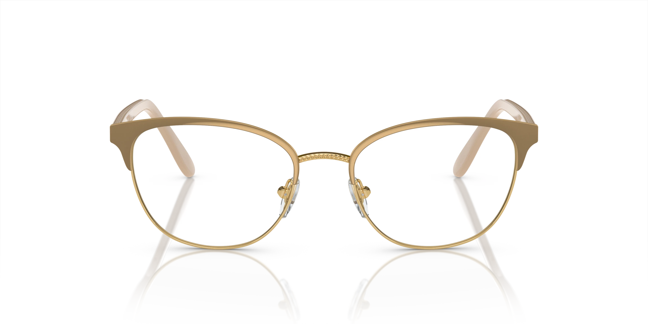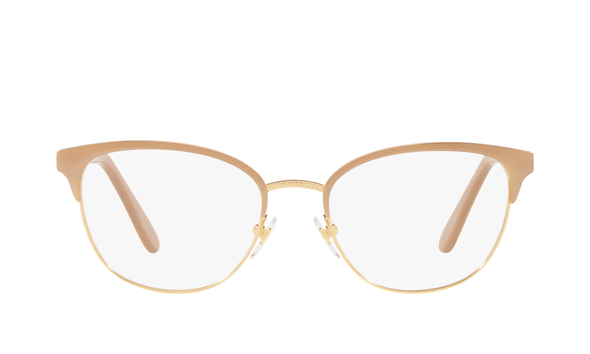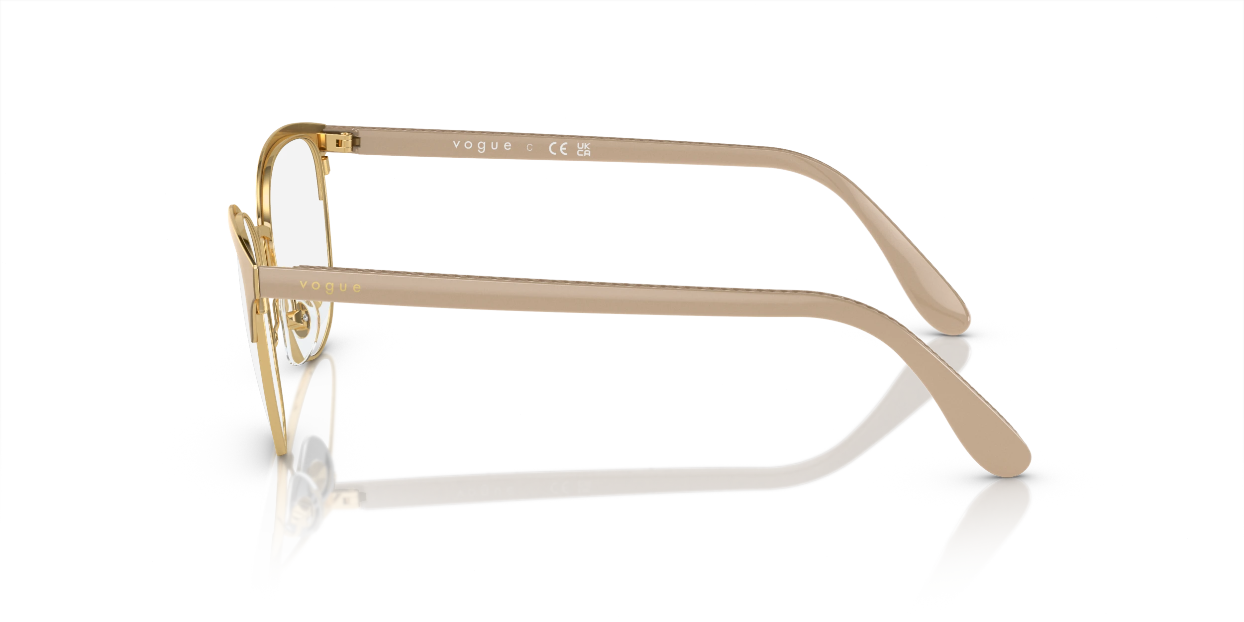 Elevate your style quotient with a pair of Vogue Eyewear VO4088 eyeglasses. These oval-shaped frames are crafted from durable metal, ensuring longevity and comfort. The polished top beige/gold color finish adds a touch of elegance, while the black color provides contrast. These glasses can be tailored to your preferences.