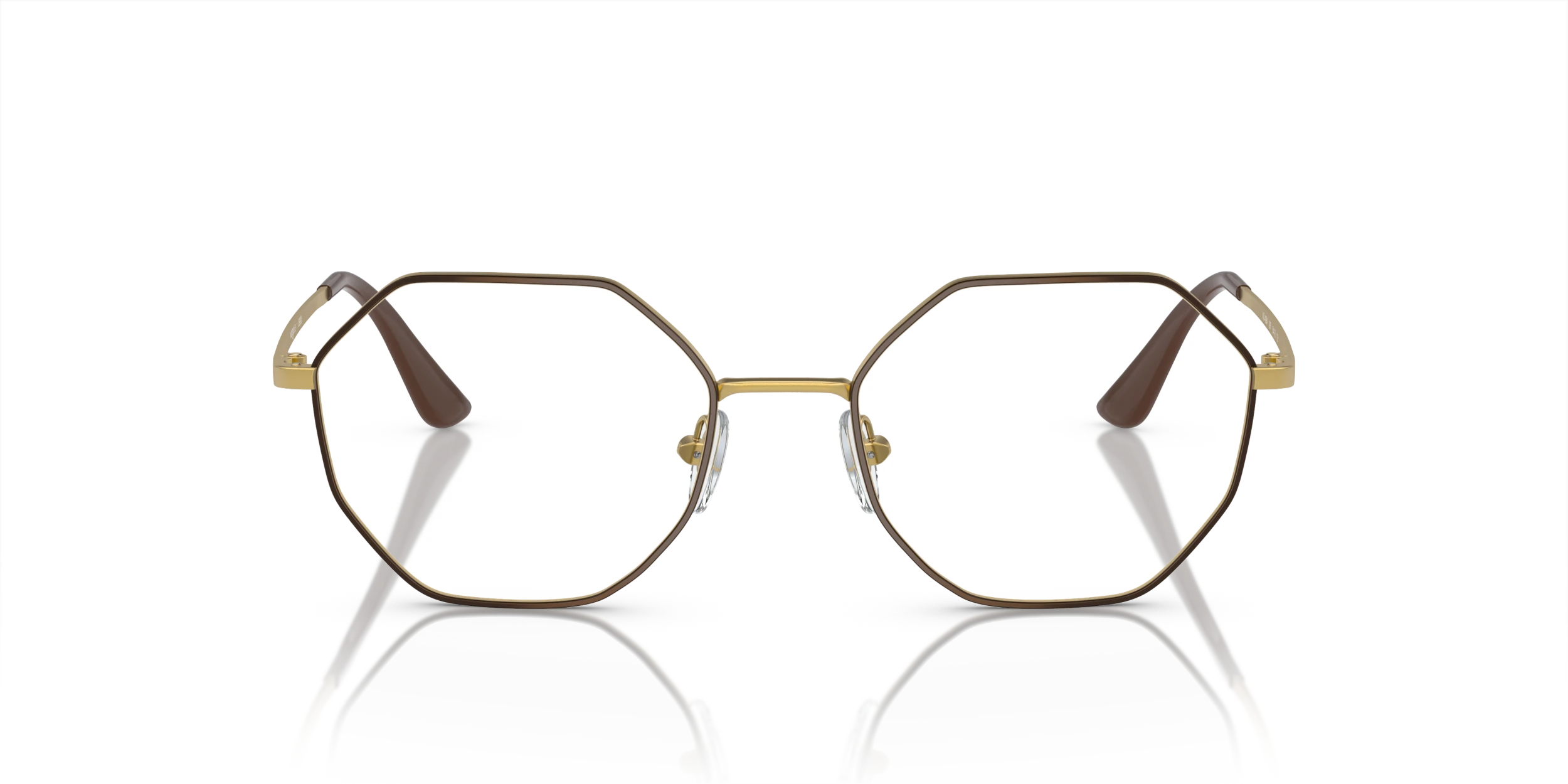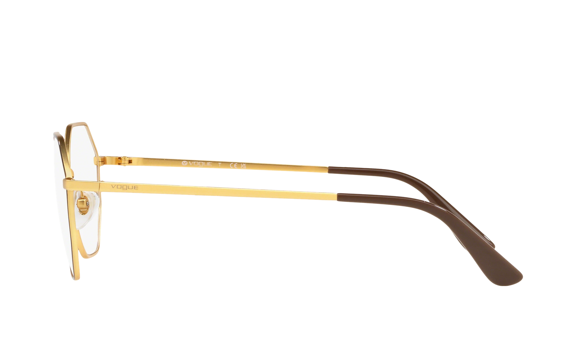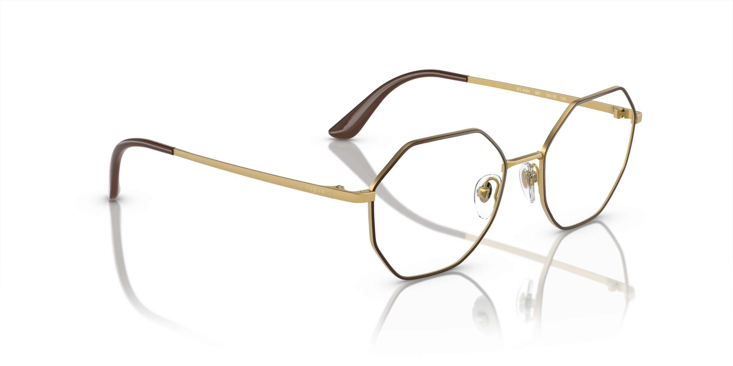 Vogue Eyewear VO4094 eyeglasses are a unique blend of style and comfort. The irregular shape adds a touch of sophistication to your look, while the matte top brown/pale gold metal frame provides durability and comfort. These frames are designed with versatility in mind, making them suitable for various face shapes. Embrace your individuality with these stylish shades from Vogue Eyewear. Available with prescription lenses.