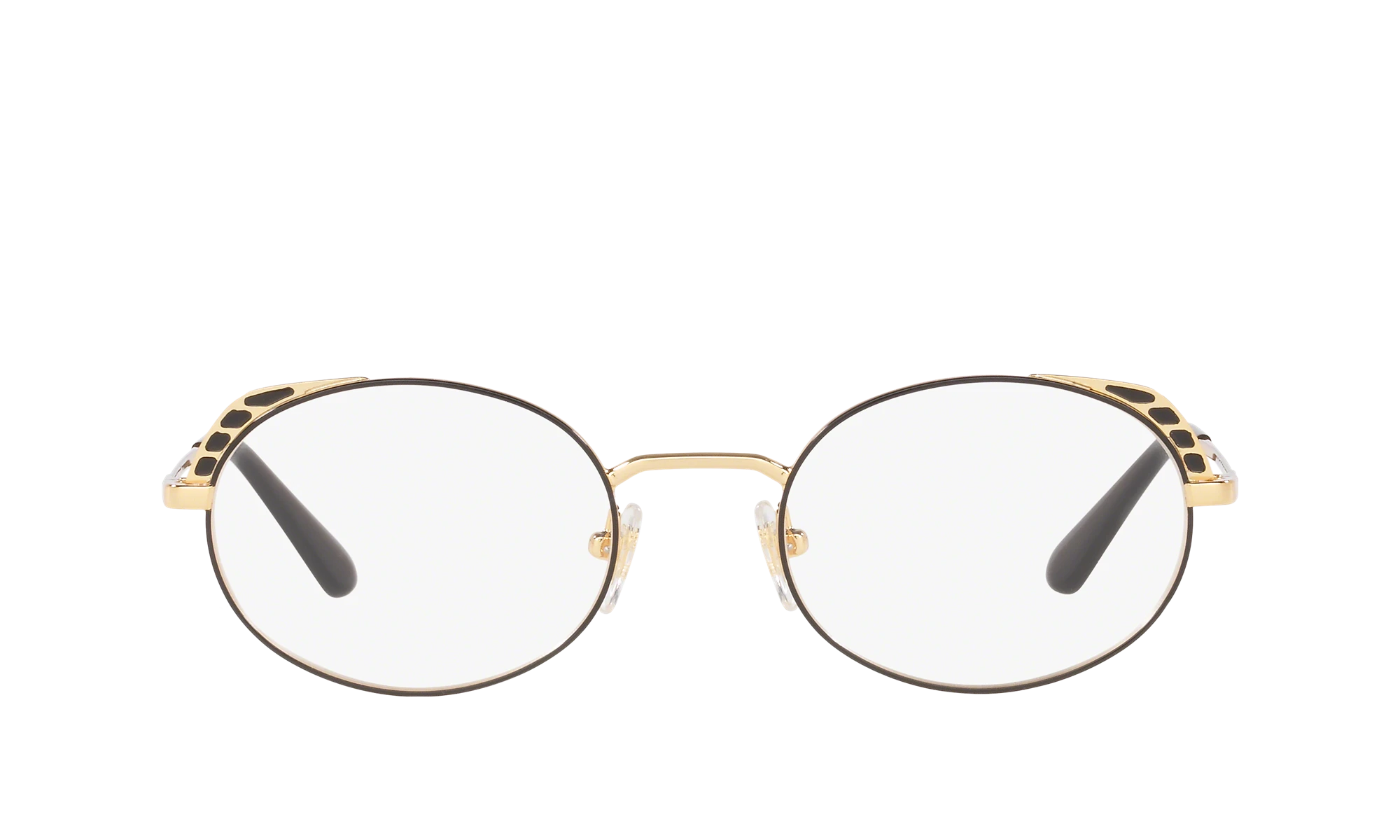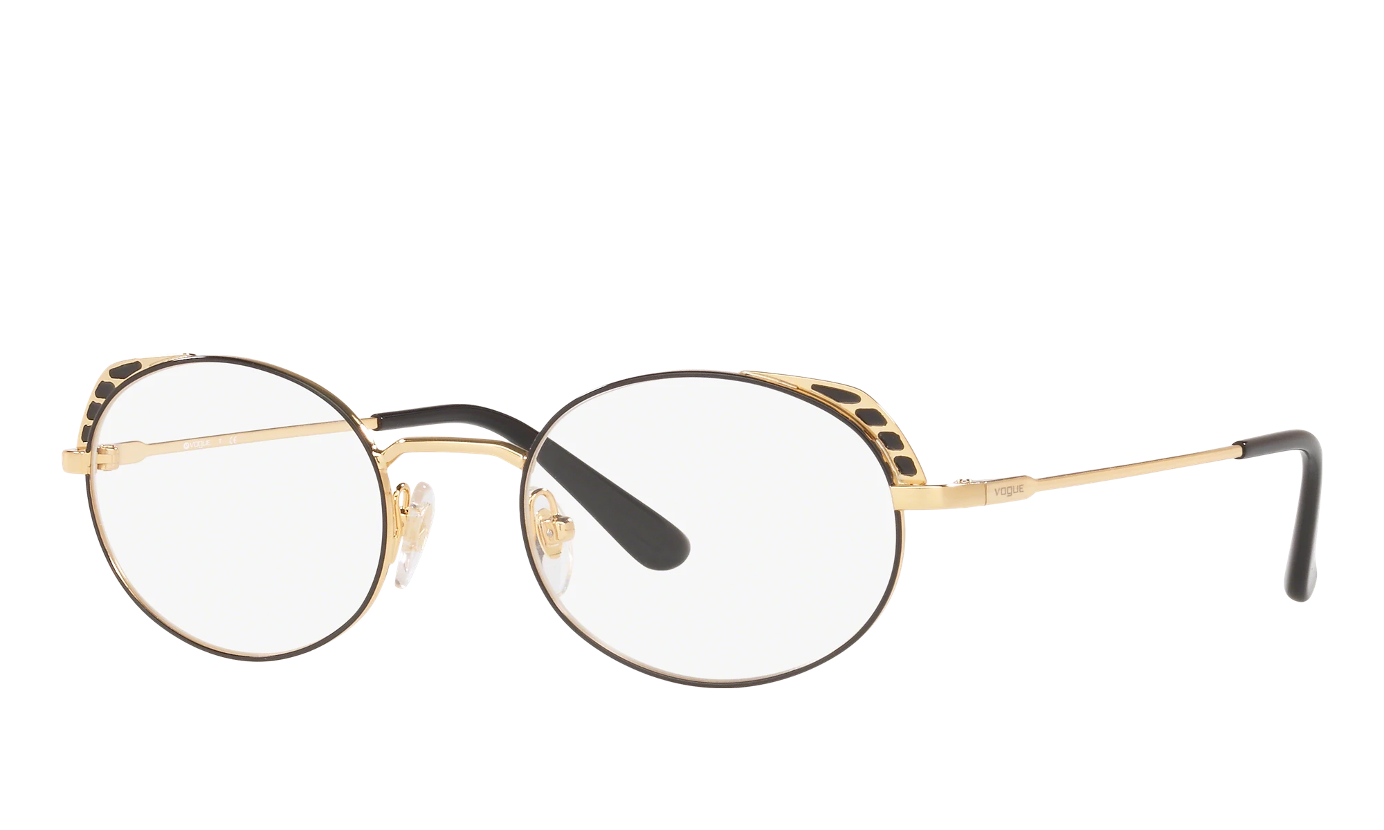Experience the perfect blend of style and comfort with Vogue Eyewear VO4132 eyeglasses. The irregular shape adds a unique touch to your look, while the matte finish gives a sophisticated feel. Crafted from durable metal, these frames are designed to last. The top black/gold color scheme makes for a striking contrast that is sure to turn heads. These glasses are not just stylish but also practical. Available with prescription lenses.
