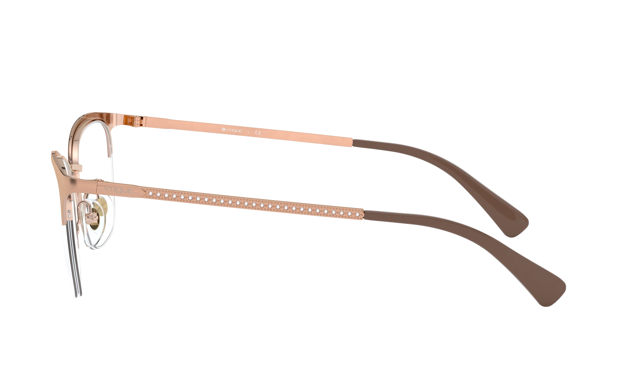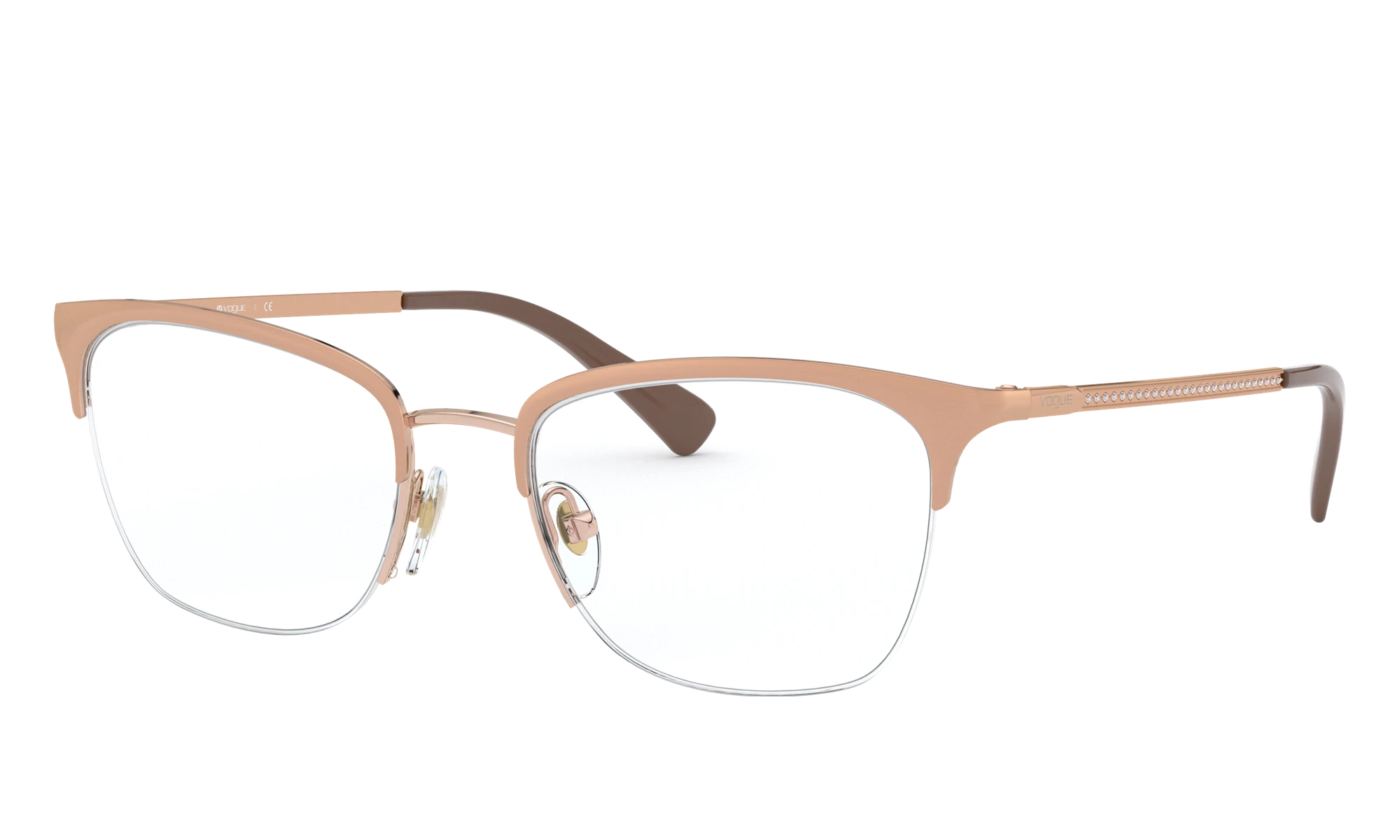 Elevate your style game by wearing Vogue Eyewear VO4144B eyeglasses. Crafted from durable metal, these pillow-shaped frames are a versatile choice for everyday wear. The polished finish of the brushed rose gold frame adds a touch of sophistication, while the strass detailing adds a glamorous touch to the overall look. These eyeglasses can be customized with your lenses to suit your vision and personal style. Available with prescription lenses.