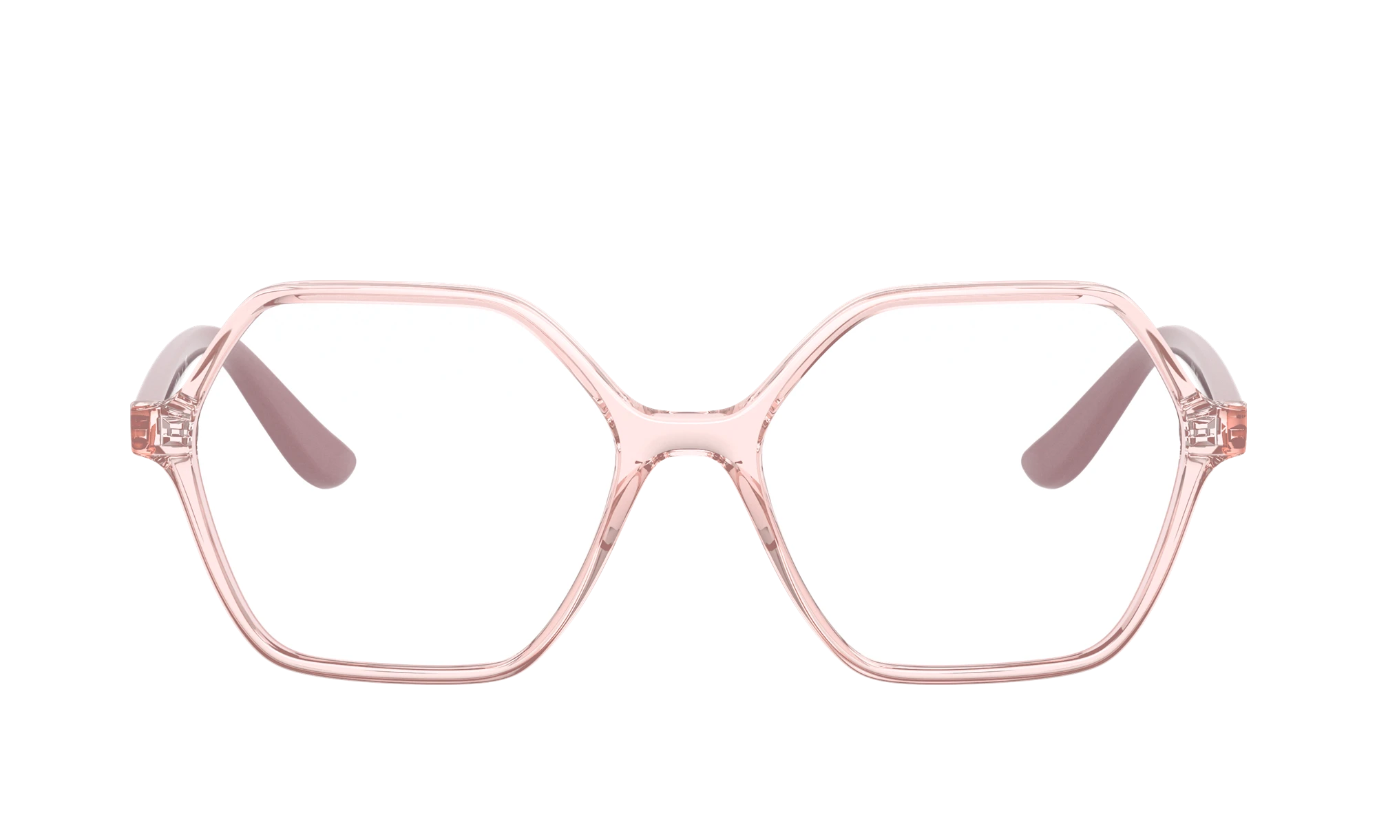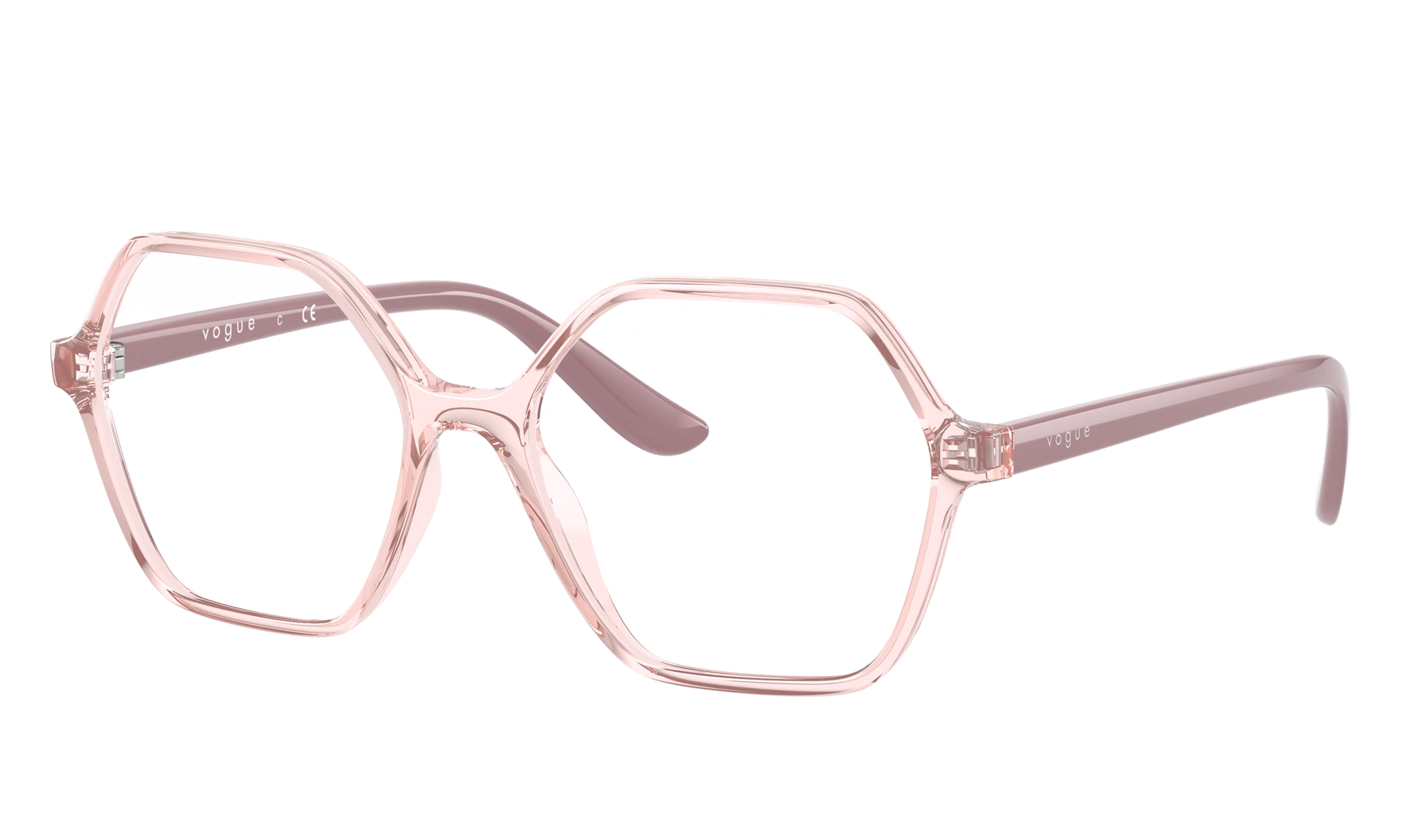 Experience the perfect blend of style and comfort with Vogue Eyewear VO5363 eyeglasses. The irregular shape adds a touch of uniqueness, while the polished transparent pink frame color gives it a youthful vibe. These glasses feature a saddle bridge for added comfort, making them ideal for everyday wear. Embrace your individuality and embrace the future with these stunning frames. Available with prescription lenses.