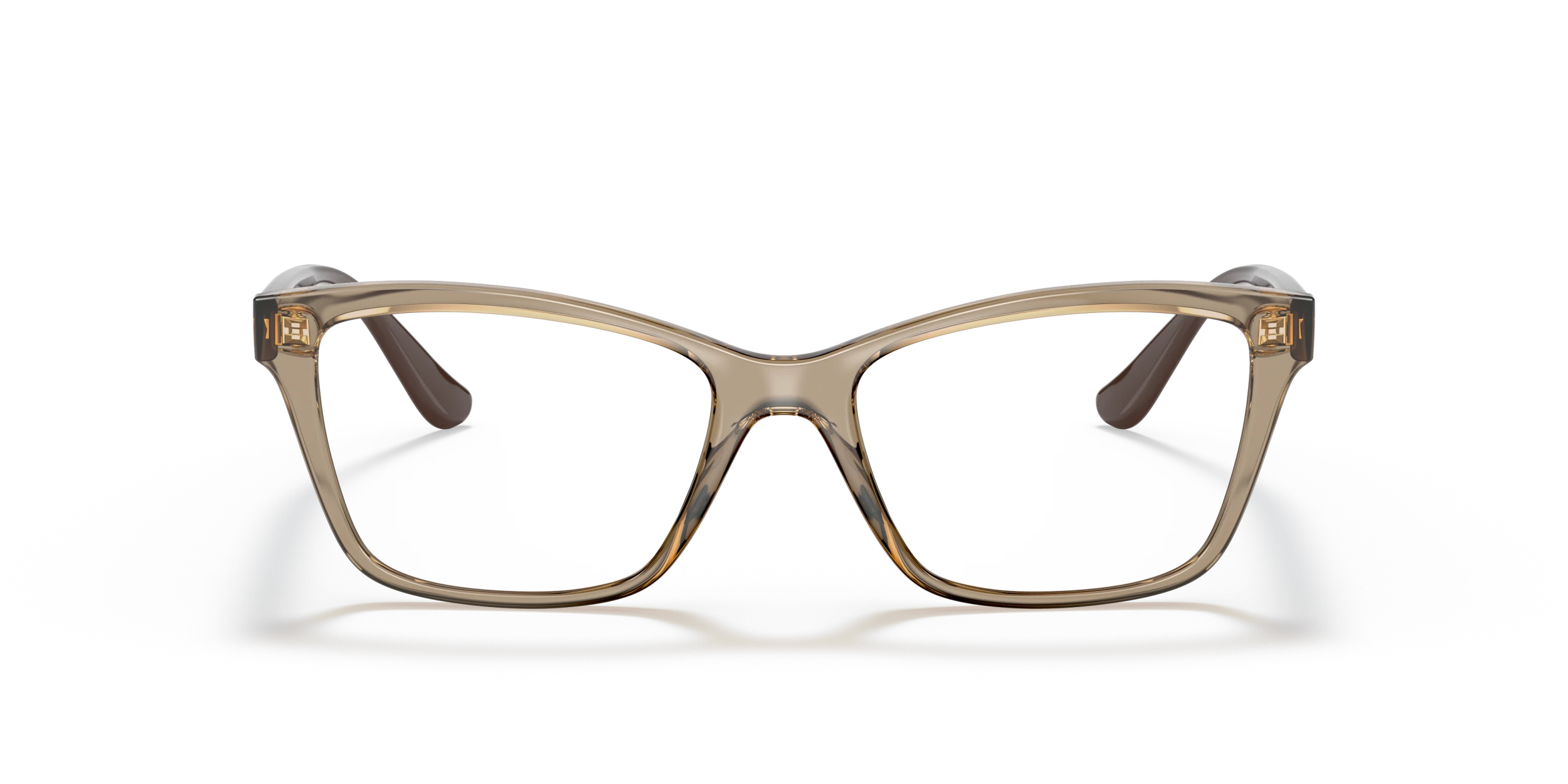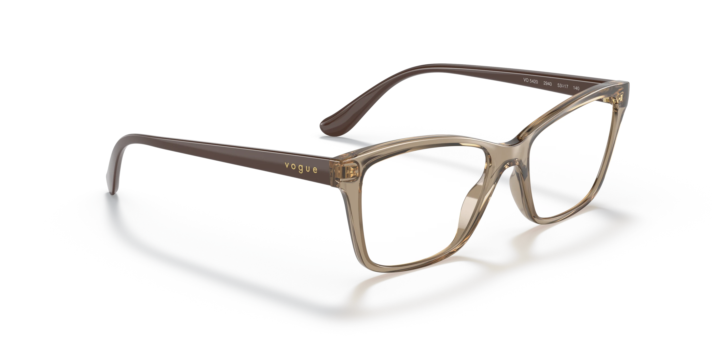 Vogue Eyewear VO5420 eyeglasses are a perfect blend of style and comfort. The polished transparent brown frame, with its unique pillow shape, adds a touch of sophistication to any look. These glasses are not just stylish but also practical. Embrace the fashion-forward trend and step out in style with these stunning frames.